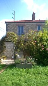- restauration d’un appentis pour un abri voiture après curage de la partie en ruine en pignon de la grange :charpente bois sur mur en pierre à conforter, et couverture en tuile plate en terre cuite