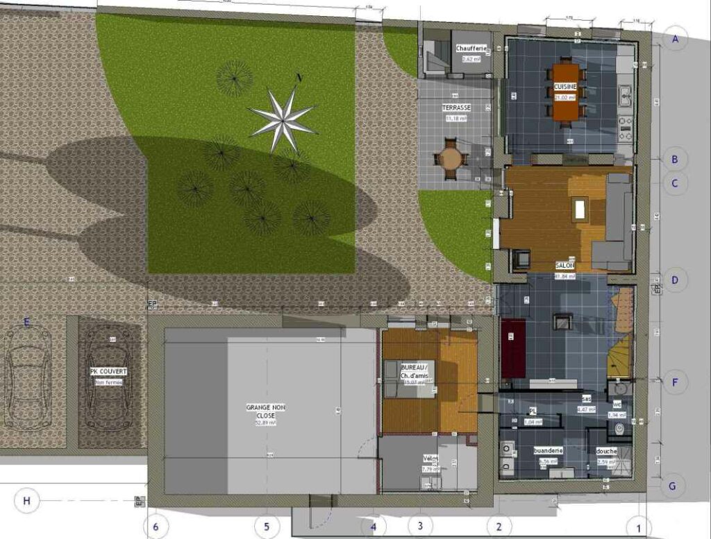 Le volume de la grange est préservé en l’état (bureau, abri vélos, grange)
